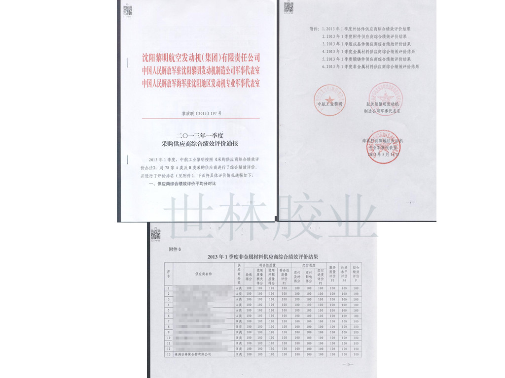 世林膠業(yè)獲得某發(fā)動機集團公司供應商綜合績效好評: