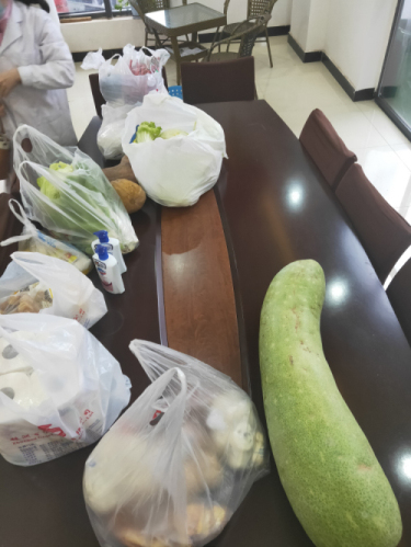 鄭媽媽奉獻(xiàn)瓜果,張美女、卜帥哥幫大家集中采購生活物資