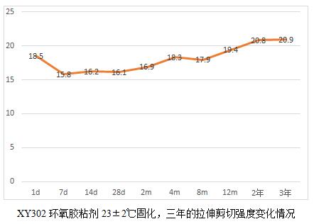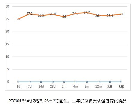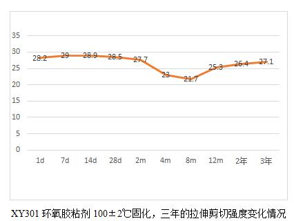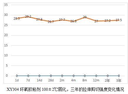 當(dāng)然通過這6個(gè)表,我們也能看出規(guī)律就是,膠粘劑產(chǎn)品高溫固化相對(duì)較為完全,后續(xù)老化數(shù)據(jù)影響不大,而常溫固化數(shù)據(jù)明顯低于高溫固化,比如XY304,常溫固化數(shù)據(jù)未25兆帕,高溫固化為28.3兆帕,而XY301室溫固化數(shù)據(jù)22.5兆帕,高溫固化為28.2,相比高出25%。