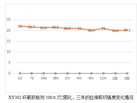 XY304環(huán)氧膠粘劑的耐老化有19.6年的實(shí)測(cè)數(shù)據(jù)。鑒于現(xiàn)在軍工用膠粘劑品種有新增且部分原材料供貨廠家也發(fā)生了變化,為了真實(shí)了解這些材料的耐老化情況,我們將公司的環(huán)氧類型的膠粘劑產(chǎn)品做了一個(gè)25年老化的計(jì)劃,并于2018年元月開始,預(yù)計(jì)整個(gè)試驗(yàn)到2043年結(jié)束。