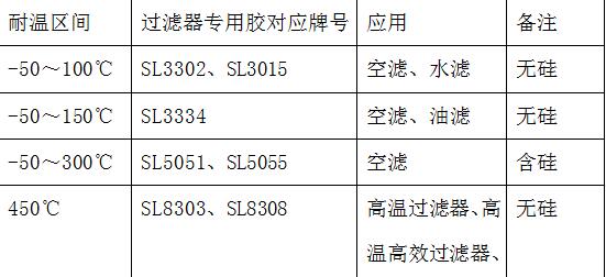 過(guò)濾器中的高溫高效過(guò)濾器比較特別,耐溫一般從200-400℃不等,這種過(guò)濾器由不銹鋼邊框和過(guò)濾網(wǎng)及過(guò)濾布等組成,在選用膠粘劑時(shí)較為特別,根據(jù)耐溫要求不同,只能選擇含硅的有機(jī)硅類密封膠和無(wú)機(jī)類型的不含硅的密封膠,由于無(wú)機(jī)密封膠耐溫較高,所以在高溫高效過(guò)濾器上應(yīng)用得更為廣泛。