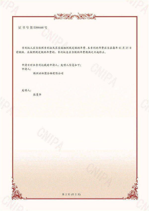 近日,株洲世林聚合物有限公司自主研發(fā)并申報的《一種耐高溫?zé)o機(jī)膠及其制備方法》(專利號ZL 2021 1 0095861.2 )獲得國家知識產(chǎn)權(quán)局頒發(fā)的發(fā)明專利證書!