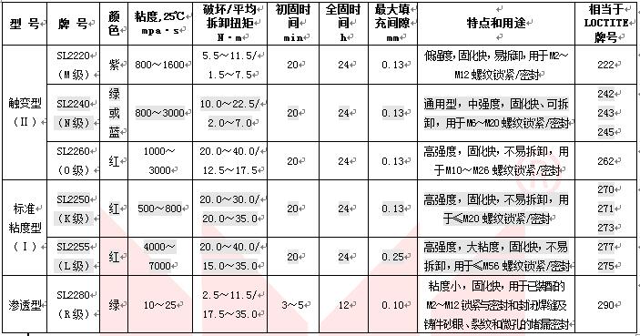 適用于汽車、摩托車、航空發(fā)動機(jī)、鐵路機(jī)車、礦山機(jī)械、采煤設(shè)備、風(fēng)動工具、沖床等螺紋的鎖緊和密封。
