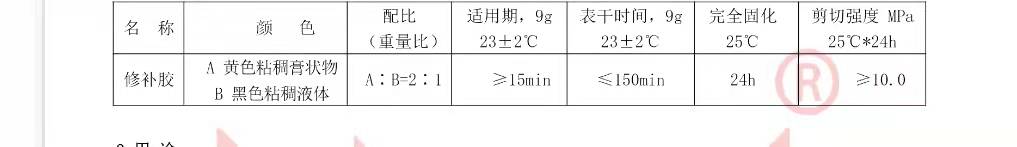 2 配膠 按規(guī)定進(jìn)行配制,將膠置于潔凈、干燥、無(wú)油的容器中,混合均勻至顏色一致。配膠不宜過(guò)多,做到隨配隨用。夏季一次配膠量不應(yīng)超過(guò) 500 克。